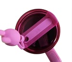 The advanced FlowState™ lid features a rotating cover with three positions: a straw opening designed to resist splashes while holding the reusable straw in place, a drink opening, and a full-cover top. The ergonomic handle includes comfort-grip inserts for easy carrying, and the narrow base fits just about any car cup holder.
