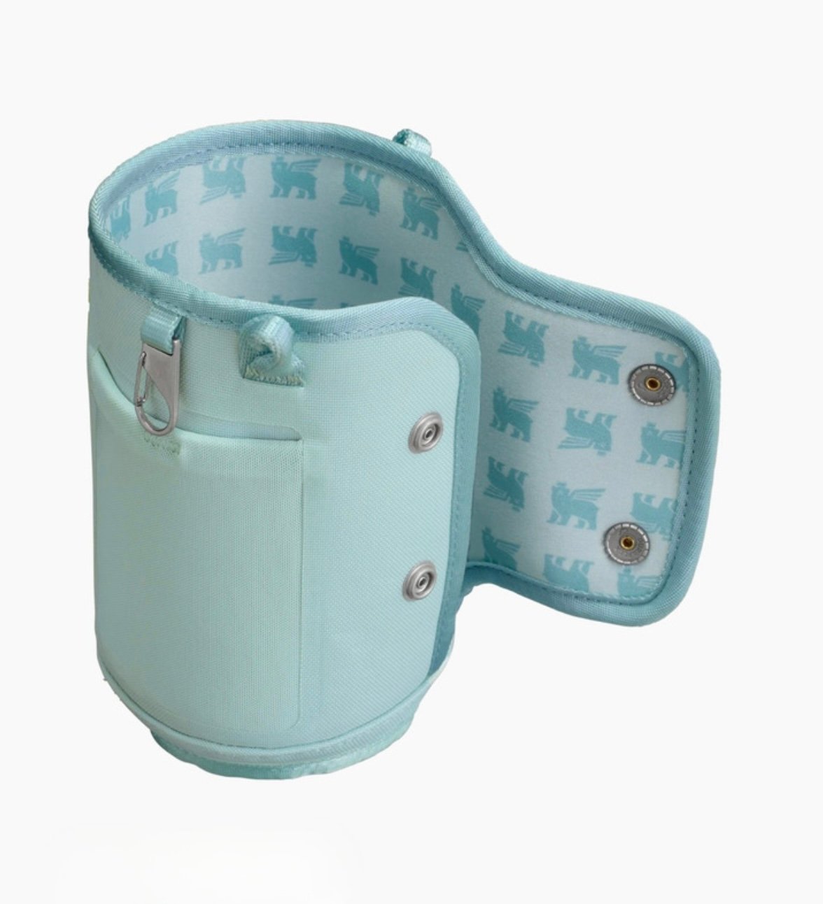 Made of 100% recycled polyester, style meets function in a vivid array of colors. Keep the All Day 40 oz Quencher Carry-All by your side to meet your hydration goals. Wrap the band, lined with a winged bear pattern, around your 40-ounce Quencher and secure with the double snap closure. Sling the strap across your body, hold onto your loved ones and have fun. With three pockets, one is spacious enough to hold your phone while the second pocket below stores a slim wallet or card sleeve. A smaller mesh pocket holds compact headphones, lip balm, or the small extras you can't live without. Thoughtful design means a dedicated sleeve to hold onto your sunglasses.