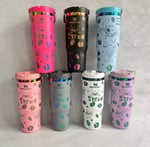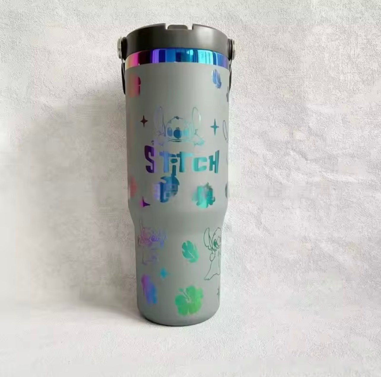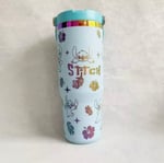 The tumbler features a lid with an interior straw and handle, making it easy to carry around and sip on your favorite drink. It is laser engraved with the Stitch character and theme, adding a touch of personalization. Hand wash only and perfect for Stitch fans, this tumbler is a must have.