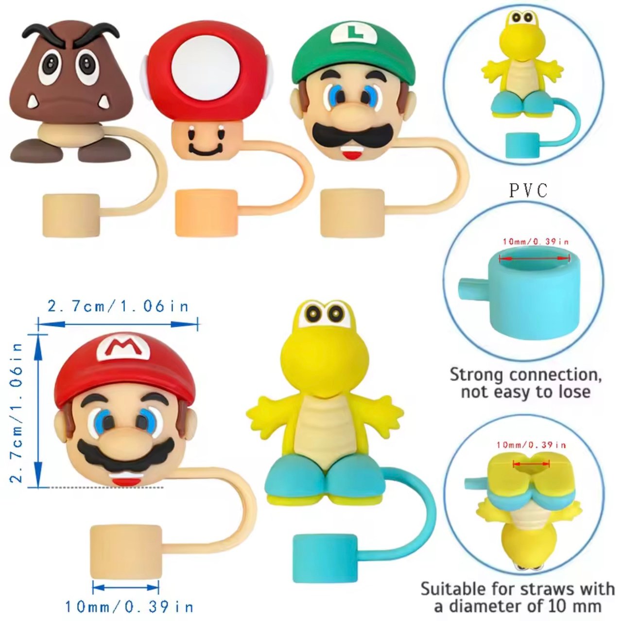 Keep your drinks clean and leak-free with these adorable Super Mario reusable straw covers! Designed for 10mm diameter straws, they provide essential protection for your favorite tumblers.