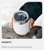• MagSlider™ Lid uses magnets for easy opening and closing, and keeps your beverage cold/warm longer